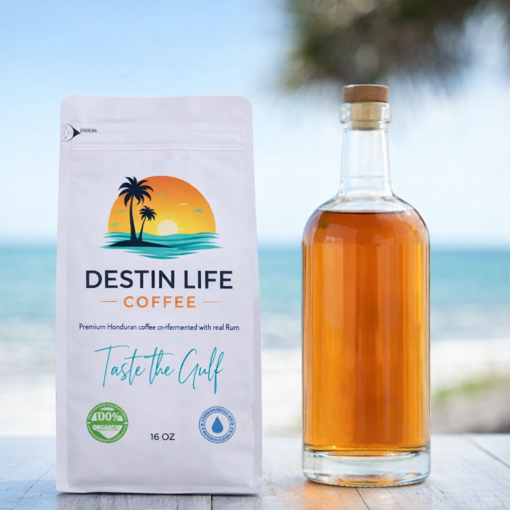 Inspired by the emerald waters and white-sand coast of Destin, Florida.Before roasting, the premium, Honduras beans are fermented with organic premium craft rum for 84 hours, a meticulous process designed to elevate—not mask-the coffee's natural character.